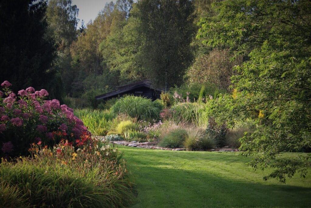 Kahe hektari suuruse aia läbimiseks kulub 1-1,5 tundi. Kevadel on pilkupüüdev 500m2 rodoaed, suvel jõekäärus iiriste ja kõrreliste kollektsioon, päevaliiliad ja üle 100 hosta sordi. Suve teises pooles kaunistavad aeda üle 50 erineva aedhortensia sordi ja lisaks veel hortensiate looduslikud liigid ja puishortensiad.